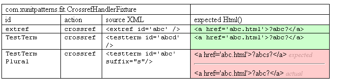 Example FitTestFixture embedded from java/com/xunitpatterns/fit/CrossrefHandlerFixture.java