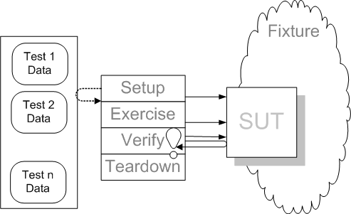 - The tests need to employ the same SUT interaction logic in each test. (The tabular data needs to be injected into the SUT during the fixture setup or exercise SUT phases or retrieved from the SUT during the result verification phase.) If we have several different styles of tests that we want to run, we probably have to build one or more different fixtures for each style of test. Building a new fixture is typically more complex than writing a few Test Methods (page X). There is a plethora of different fixture types available to subclass or use as is but this is yet another thing that developers need to learn to do their jobs and even then, not all unit tests are amenable to automation use Fit.