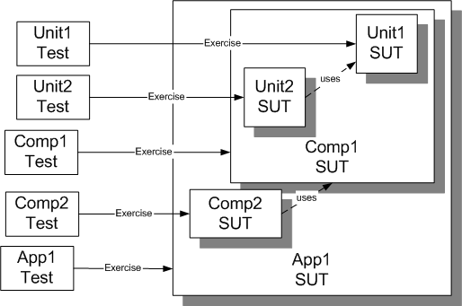 Fig. X: A range of tests each with its own SUT.