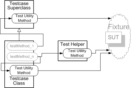 Many variants of xUnit provide a special Testcase Superclass (page X) (typically called "TestCase") from which all Testcase Classes should (and in some cases must) inherit either directly or indirectly. If we have any useful utility methods on our Testcase Class and we want to reuse them in other Testcase Classes, we may find it useful to create one or more Testcase Superclasses from which to inherit instead of "TestCase" but we need to be careful if those methods need to see types or classes that are in various packages within the SUT as we don't want our root Testcase Superclass to depend on them directly. We may be able to create a Testcase Superclass for each test package to keep our test class dependencies non-cyclic. The alternative is to create a Test Helper for each domain package and put them in the appropriate test packages. This way, a Testcase Class is not forced to choose a single Testcase Superclass; it can merely "use" the appropriate Test Helper(s).