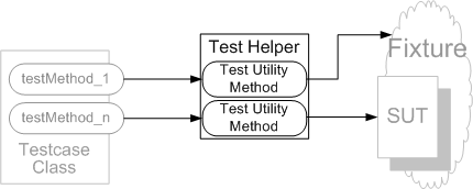 If it isn't possible to use class methods for some reason, we can use instance methods. In this case, the client test will need to instantiate the Test Helper and store it in an instance variable; the methods can then be accessed via this variable. This is a good approach when the Test Helper is holding references to fixture or system under test (SUT) objects and we want to make sure that we don't creep into a Shared Fixture situation. It is also useful when the helper is being used to store expectations for a set of Mock Objects (page X) so that we can verify that the calls are interleaved between the Mock Objects correctly.