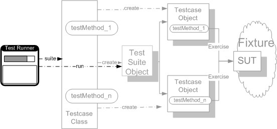 There are several different styles of Test Runner. The most common variations are running tests from within an IDE and running tests from the command line. they all depend on the fact that all Testcase Objects implement a standard interface.